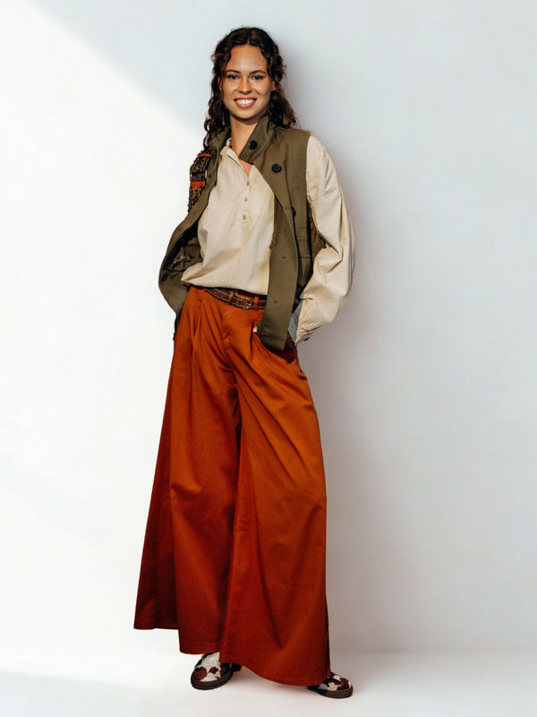 | Description | Zeer berde broek met plooien vooraan.Knoop en rits. 100% katoen |
